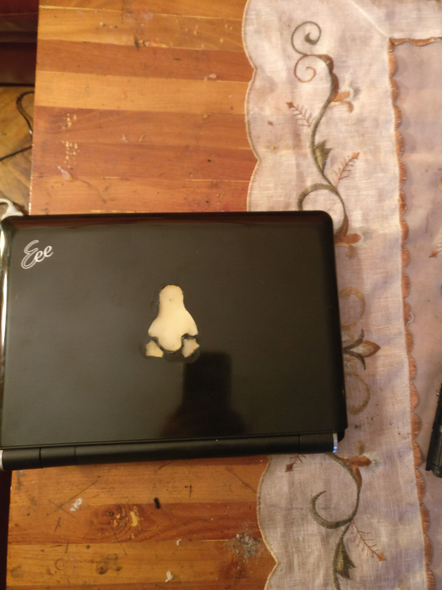 A feladat: Az eeepc fedlapjába egy világító tux pingvint farigcsálni. (vagy bármely mintát, amit akarsz rá! )