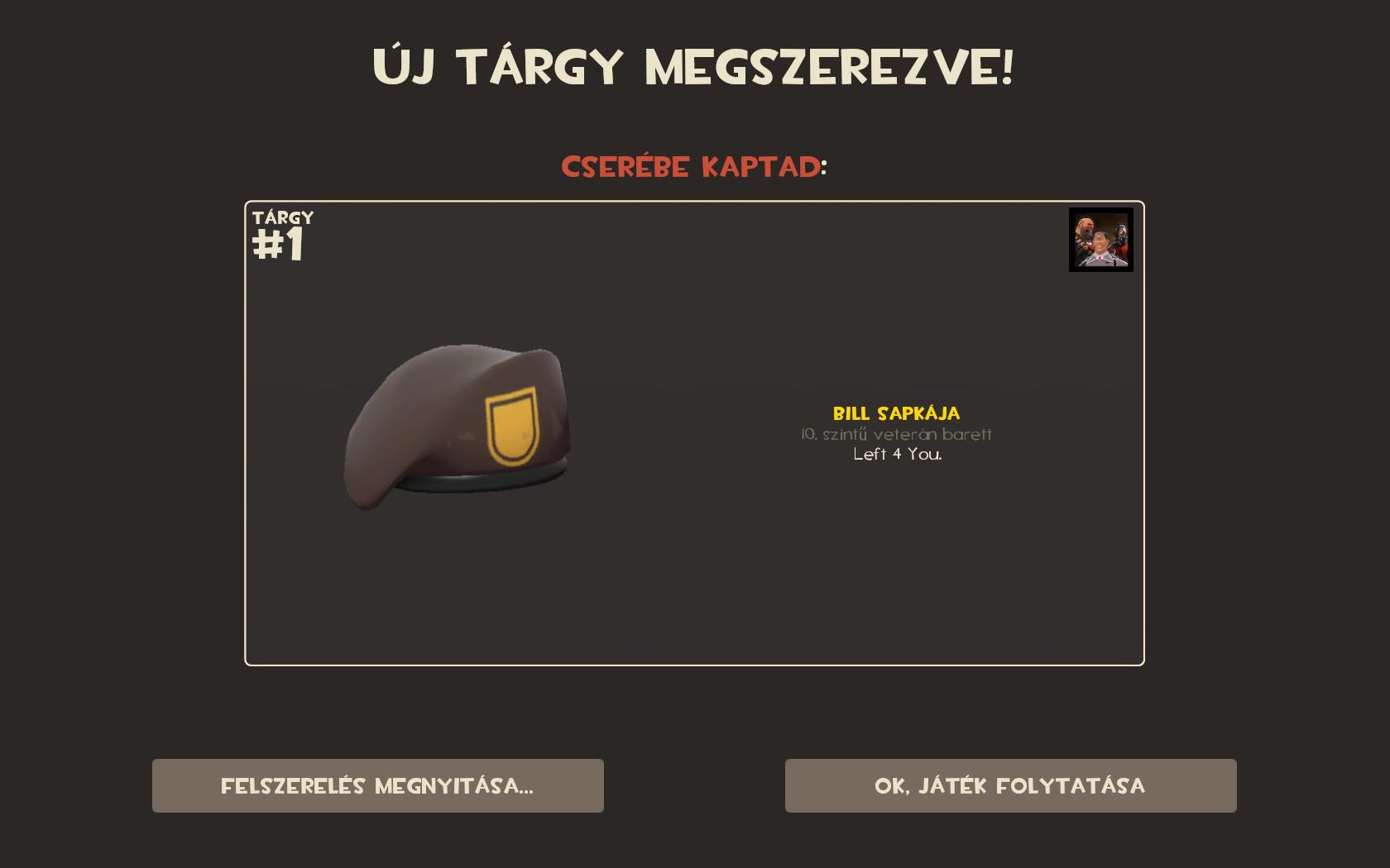 Van ugye a Left 4 Dead játék,és az egyik szereplő lenne Bill,na és ennek a sapiját szereztem meg!