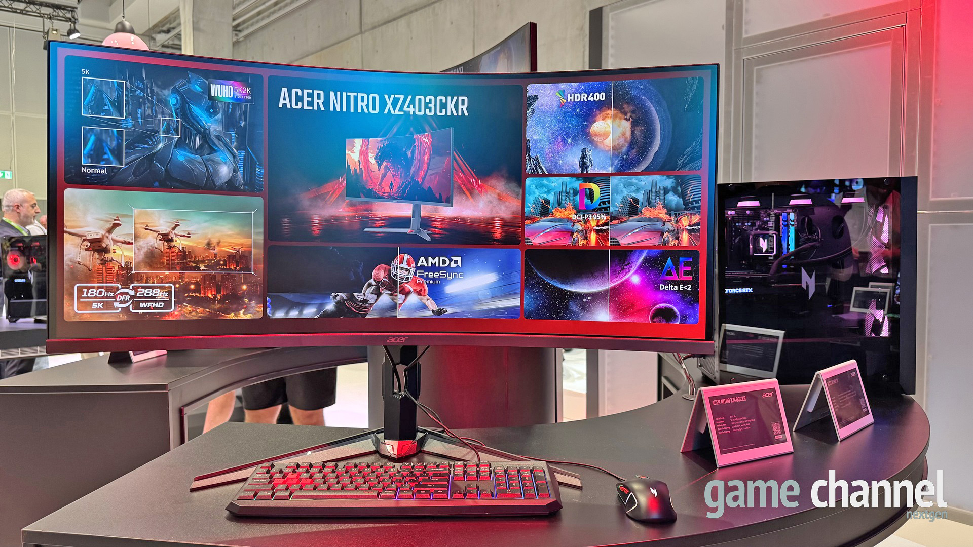 Nitro XZ403CKR: 39,7 hüvelykes, ívelt kijelző, 5K WUHD felbontással és 288 Hz-es frissítéssel. A DFR technológia, FreeSync Premium és 5 W-os hangszórók teszik igazán sokoldalúvá. Magyar megjelenés: 2026 első negyedév – Várható ár: kb. 388 000 Ft (999 euró)