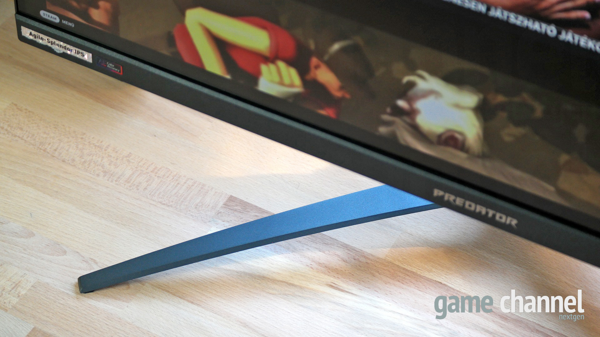 Természetesen nem csak a telepített szoftverrel állítgathatjuk a monitor tulajdonságait, de beépített menüvel is ellátták a mérnökök, amit több, a panel alján jobbra található gombbal is tudunk vezérelni, a mindenre kiterjedő beállítások között. Az alapvetően letisztult dizájn a hátlapon háromszöges mintázatot kapott, ami roppant mutatós, kár hogy tulajdonképpen soha nem látjuk. Elöl a talpak fölött, az állvány alján egy szitázott Predator logó, a panel alsó szegmensében pedig egy felirat köszön vissza.