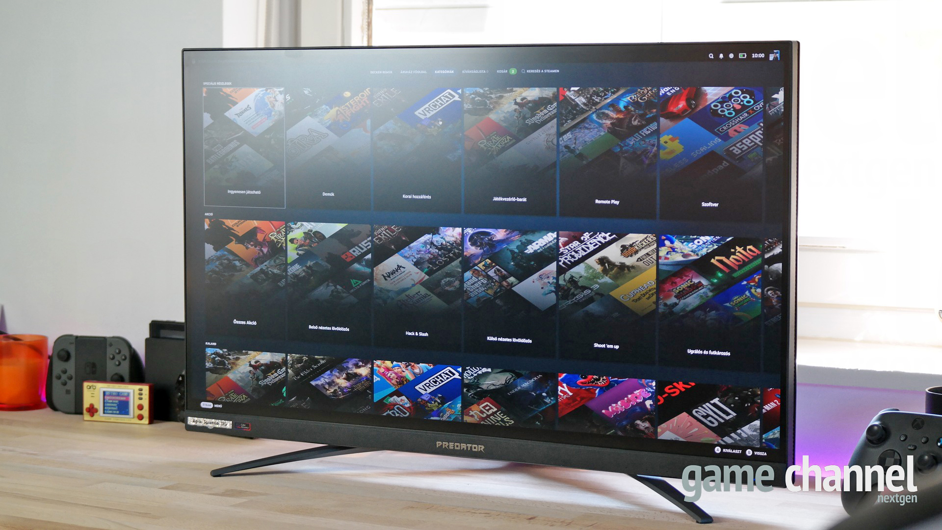 Nálunk a tesztidőszak alatt volt rákötve egyszerre MacBook Pro, Windowsos asztali gép, Nintendo Switch és tévézéshez set top box is – mindenhez kiválóan lehetett használni, a streaminget nem is említem külön, hiszen az magától értetődő. Teljesen lehúzva a magasságot egyébként teljesen úgy néz ki mint egy modern tévé – milyen jópofa dolog lenne hozzá egy távirányító is… Multimédiára tehát kifejezetten alkalmas az Acer monitora.