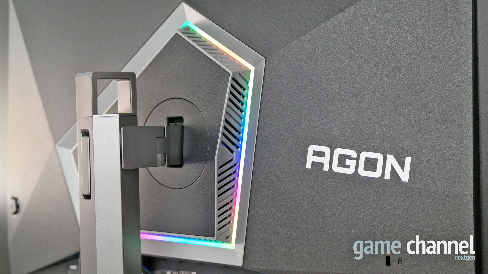 A hátlapon szintén ez jellemző a készülékre, az egyedi alakzatba csatlakozik bele a tartókar. Ezt egyébként körben szellőző rácsok takarják, körülötte pedig RGB ledek garmadája kapott helyet, amely már most előrevetíti, hogy játék közben a háttérből is kapjuk majd a kontentet fények formájában. Ha valakit az ilyesmi zavar, megnyugtatjuk: ezek a fények nem csak állíthatók minden tekintetben, de ki is kapcsolhatók.