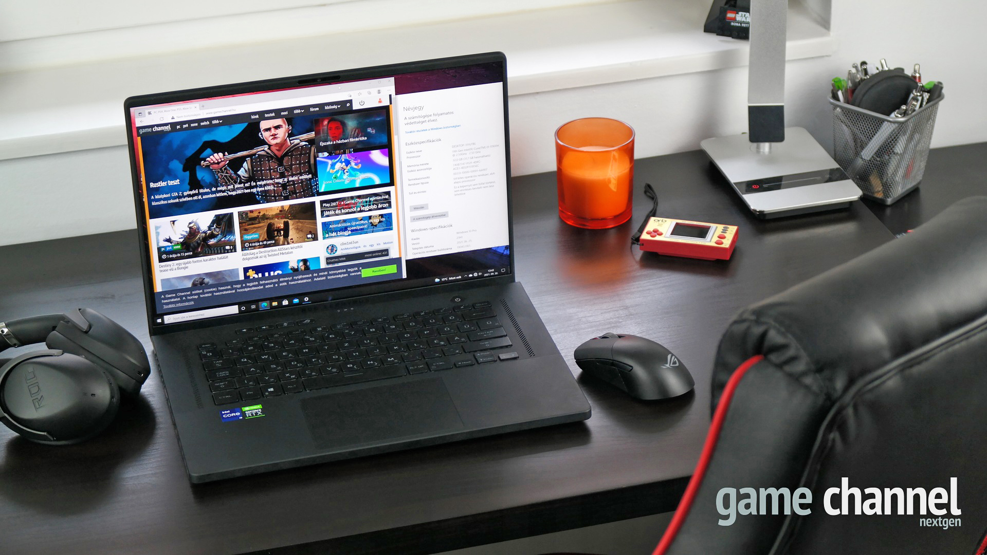 A már említett kijelzőméret és képarány nem minden, amivel kiemelkedik a kütyü, lévén az Asus az egyik legmodernebb, legerősebb videokártyát integrálta a kaszni alá, nevezetesen az Nvidia RTX 3070-et. Emellett egy bivalyerős processzor is társul az összképhez, hiszen a billentyűzet alattt az Intel Core i9-11900 széria lapul, ami máris jelzi, hogy egy igazi erőművel szemezünk.
