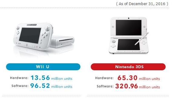 A Nintendo elérhetővé tette legújabb üzleti jelentését, amely a december 31-én záródott utolsó pénzügyi negyedévet foglalja össze számunkra, így megtudtuk belőle, hogy míg a Wii U eladások még tovább közelítették a béka fenekét, a 3DS viszont továbbra is szárnyalt. A japánok szerint ugyanis csak a kérdéses három hónapban világszerte 200 ezer Wii U-t küldtek a boltok polcaira, miközben 3DS-ből 3,73 millió példánnyal számoltak, amivel a kis konzol képes volt újabb jelentős mérföldkövet átlépni.