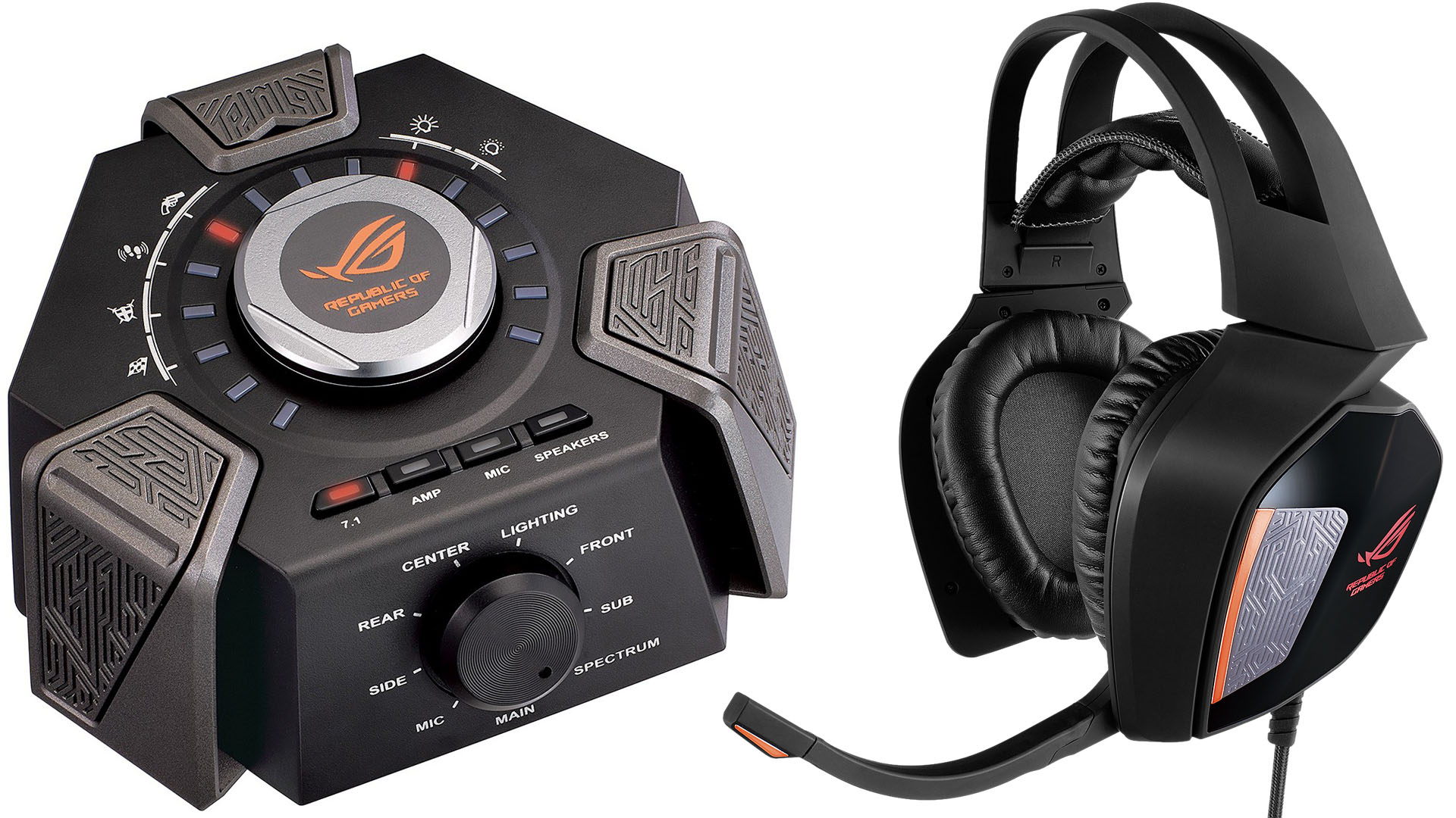 Az ASUS ROG Centurion névre hallgató újdonság 7.1-es hangzásvilágot biztosít, mikrofonja pedig digitális zajszűrőt kapott. Az ESS Hi-Fi szintű fejhallgató erősítő az USB-s asztali állomásban kapott helyet, mely játék közben is tömérdek beállítási lehetőséget kínál.