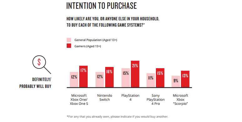 Bár a Microsoft nagy dolgokat vár a Project Scorpio kapcsán, a Nielsen legfrissebb statisztikái alapján azonban az amerikai gamerek körében nem várják túl sokan a konzolt, sőt mi több, a legkisebb százalékos arányt sikerült elérnie ezen a téren. A felmérésben a kutatók 13 évnél idősebb amerikai játékosokat kérdeztek ki arról, hogy milyen konzolt szeretnének vásárolni maguknak a jövőben, és mint kiderült, a standard PS4 még mindig magasan vezeti a listát, hiszen a gamerek 21 százaléka szeretne magának rövidesen beszerezni egyet a Sony konzoljából.