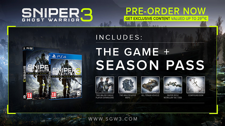 A Season Pass egyébiránt két egyjátékos kiegészítővel bővíti majd az alapokat, amelyek a The Sabotage és a The Escape of Lydia lesznek – utóbbit kell nélkülözniük az Xbox One-os rajongóknak -, amelyek a sztori bővítésén túl két extra multiplayer térképpel érkeznek, de két újabb fegyver – egy íjpuska és a McMillan TAC-338A távcsöves puska – mellett még egy jármű is csatlakozik a felhozatalhoz.