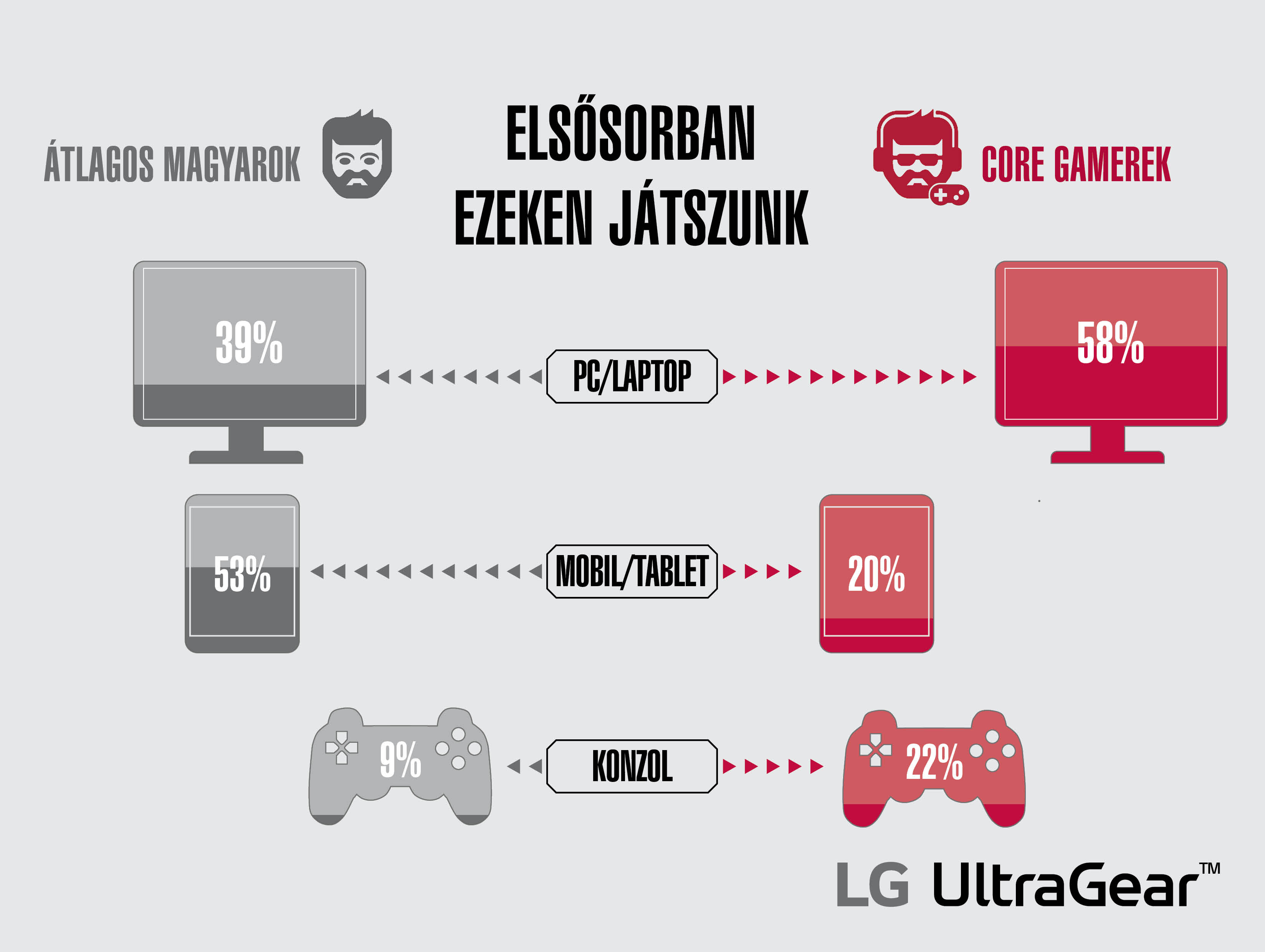 Érdekes statisztikai adatok derültek ki a magyar játékosok szokásairól az LG Electronics legfrissebb felméréséből, mely országos szinten arra a következtetésre jutott, hogy a keményvonalas gamerek napi szinten akár két és fél órát is tölthetnek a képernyő előtt. A válaszadóknak közel háromnegyede rendszeresen játszott valamilyen játékkal, és míg az átlagos internetezők 29 százaléka naponta, 26 százalékuk pedig hetente alkalmanként 84 percet töltött játékkal, addig a core gamerek esetében közel 60 százalékuk naponta, 36 százalékuk pedig hetente jutott a gép elé, de akkor 142 percig hódoltak kedvenc szenvedélyüknek.