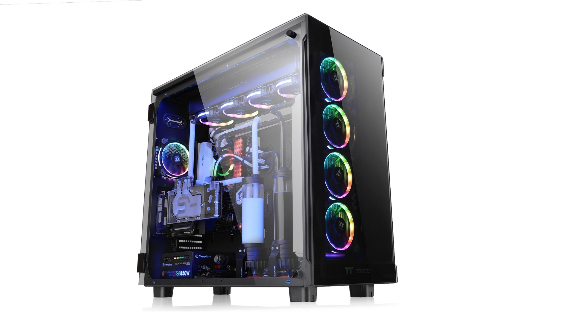 A Thermaltake a CES 2018 alkalmából újabb álomszép, kifejezetten gamereknek vagy tuningmániás felhasználóknak szánt számítógépházat mutatott be View 91 Tempered Glass RGB Edition Super Tower név alatt. A prémium kategóriába sorolható házikó szinte teljes mértékben átlátszó, ezáltal 5 milliméteres vastagságú edzett oldal- és előlapot kapott, amihez kitűnő hűtés is társul, hiszen a gyártó négy 14 centis Riing Plus LED RGB ventilátort épített belé, amivel a termék úgy néz ki, mint egy örvénybe került karácsonyfa.