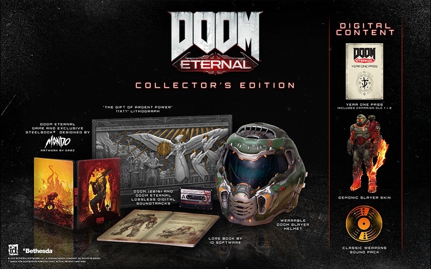 Persze a gyűjtői csomagban lesznek digitális extrák is, így egy Demonic Slayer skin mellett ott lesz a Classic Weapons Sound Pack, de az igazán nagy dolog a Year One Pass lesz, ami hozzáférést ad az első két DLC csomaghoz, melyek a kampányt bővítik. A Doom Eternal és a gyűjtői kiadás egyaránt november 22-én érkezik.