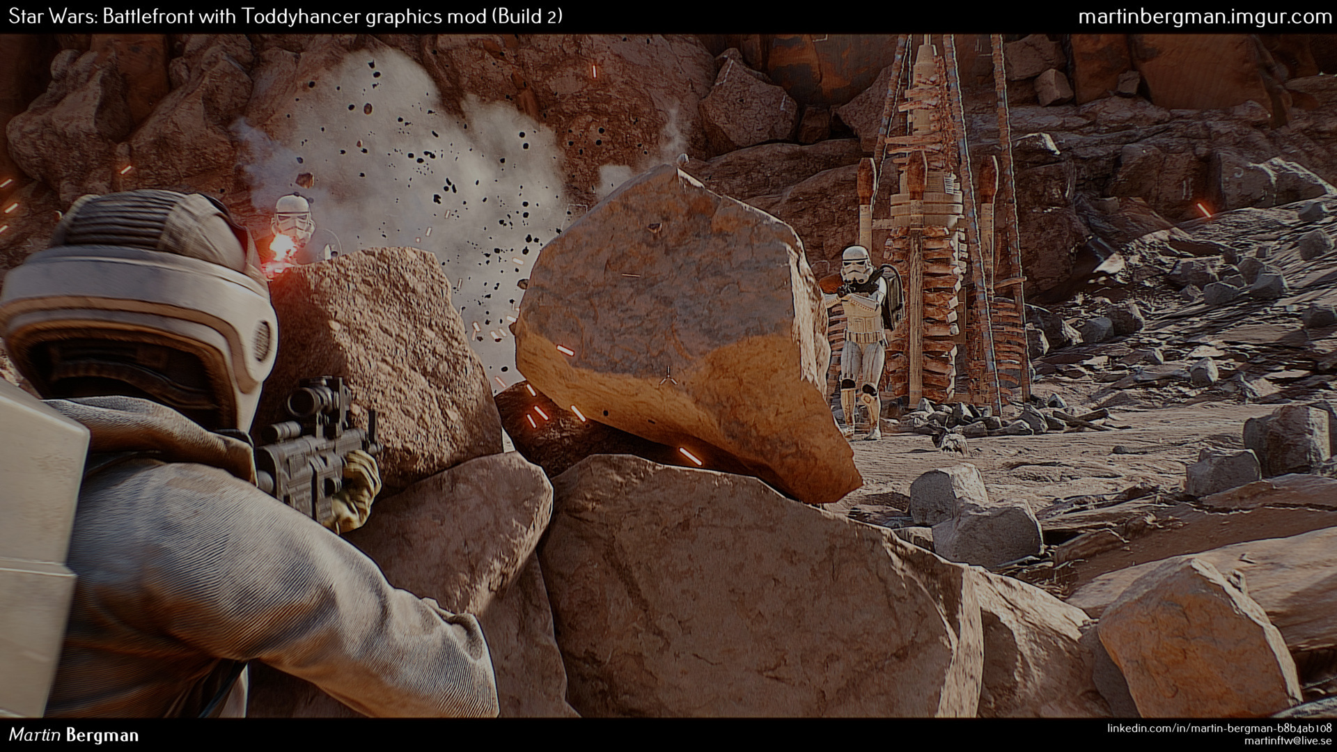 Ha emlékeztek még Martin Bergman nevére, aki korábban a GTA V-höz elkészítette az egészen állejtő Toddyhancer modot, akkor most itt az alkalom, hogy ismét imába foglaljuk a nevét. A Star Wars: Battlefront ugyanis bár szép lett, ez a fiatal tehetség úgy határozott, hogy megmutatja: mire is képesek manapság a hardverek és néhány órányi plusz munka, amivel az alkotás grafikája kis túlzással filmes élményt és realisztikus megvalósítást kaphat.