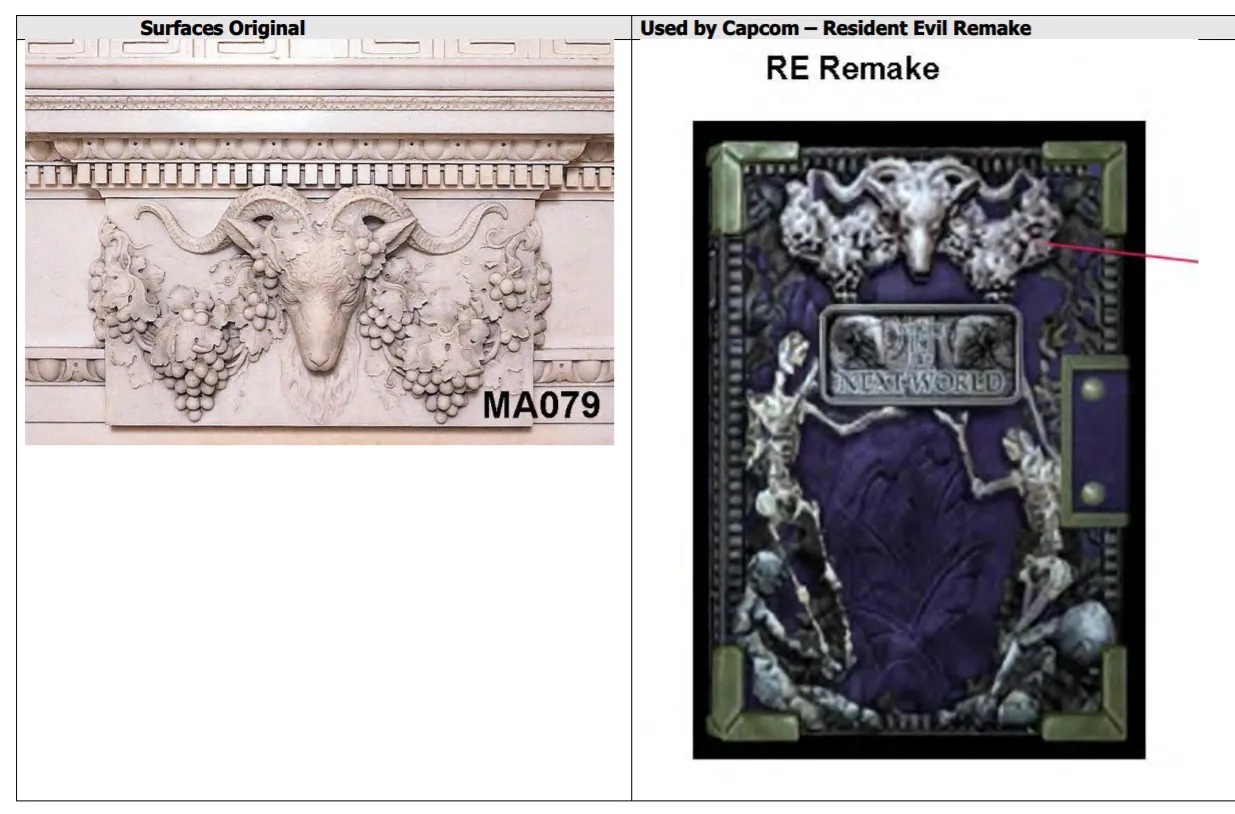 A beadványban Juracek a Capcom tavalyi adatmegsértésére mutat rá. Az adatvédelem részeként a Capcom belső Resident Evil grafikái kiszivárogtak, és Juracek nyilvánvalóan észrevette, hogy egyes feltört fájlok ugyanazokkal a címkékkel rendelkeznek, mint amelyek a Surfaces című könyvéhez mellékelt CD-n találhatók.