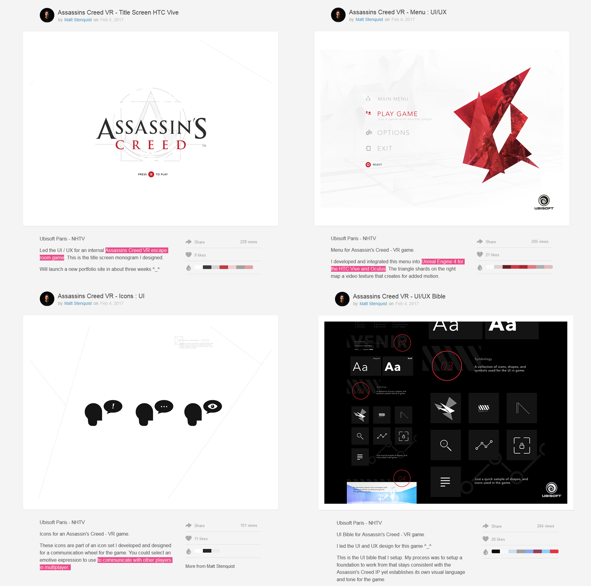 Izgalmas pletyka bukkant fel a világhálón ma reggel, amelynek középpontjába egy Assassin's Creed VR-játék került, ami az első pletykák szerint már javában készülődik a háttérben. Az információ Matt Stenquist, a Ubisoft párizsi stúdiójának egyik alkalmazottja által szivárgott ki, aki saját online portfólióján olyan határozott bejegyzéseket és képeket tett elérhetővé, amelyek egyértelművé tették egy Assassin's Creed VR-játék létezését, ami a multiplayerre épül, hovatovább a HTC Vive mellett az Oculus Riftet támogatja.