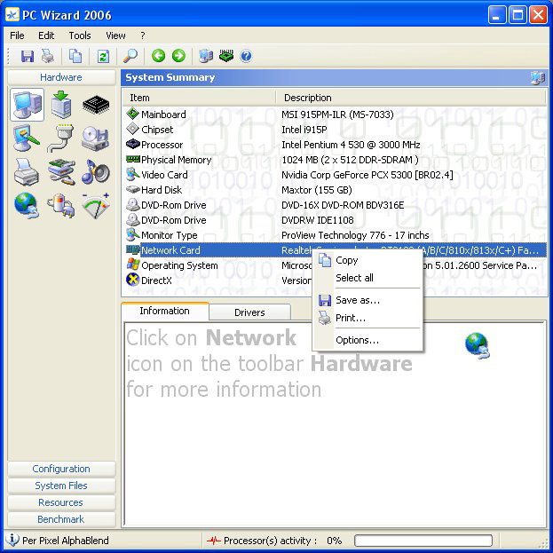 A felsoroltakon kívül a PC Wizard használatával fény derülhet még az MCI eszközökre (mpeg, avi, seq, vcr, video-disc, wave), a jelszavakra (Outlook, Internet Explorer, MSN Messenger), a DOS-os (alap, HMA, UMB, XMS, EMS, DPMI, VCPI) és Windowsos memóriára, a Windows adatokra, valamint a telepített TrueType és OpenType betűkészletekre.