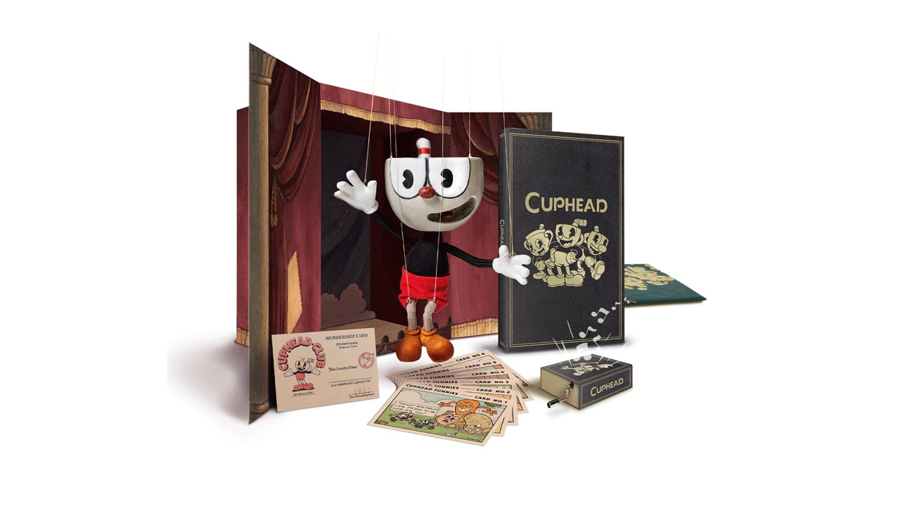 A PS4-re, Xbox One-ra és Nintendo Switch-re beharangozott csomag nem lesz olcsó, 200 dollárba fáj majd és jövő év elején érkezik, a pénzünkért azonban a játék lemezes változata mellett kapunk hat művészeti kártyát, egy miniatűr zenedobozt, egy Cuphead Club tagsági kártyát, egy Inkwell Islands térképet, de az exkluzív csomagolás egy 20 centiméteres Cuphead marionett bábut is tartalmaz majd.