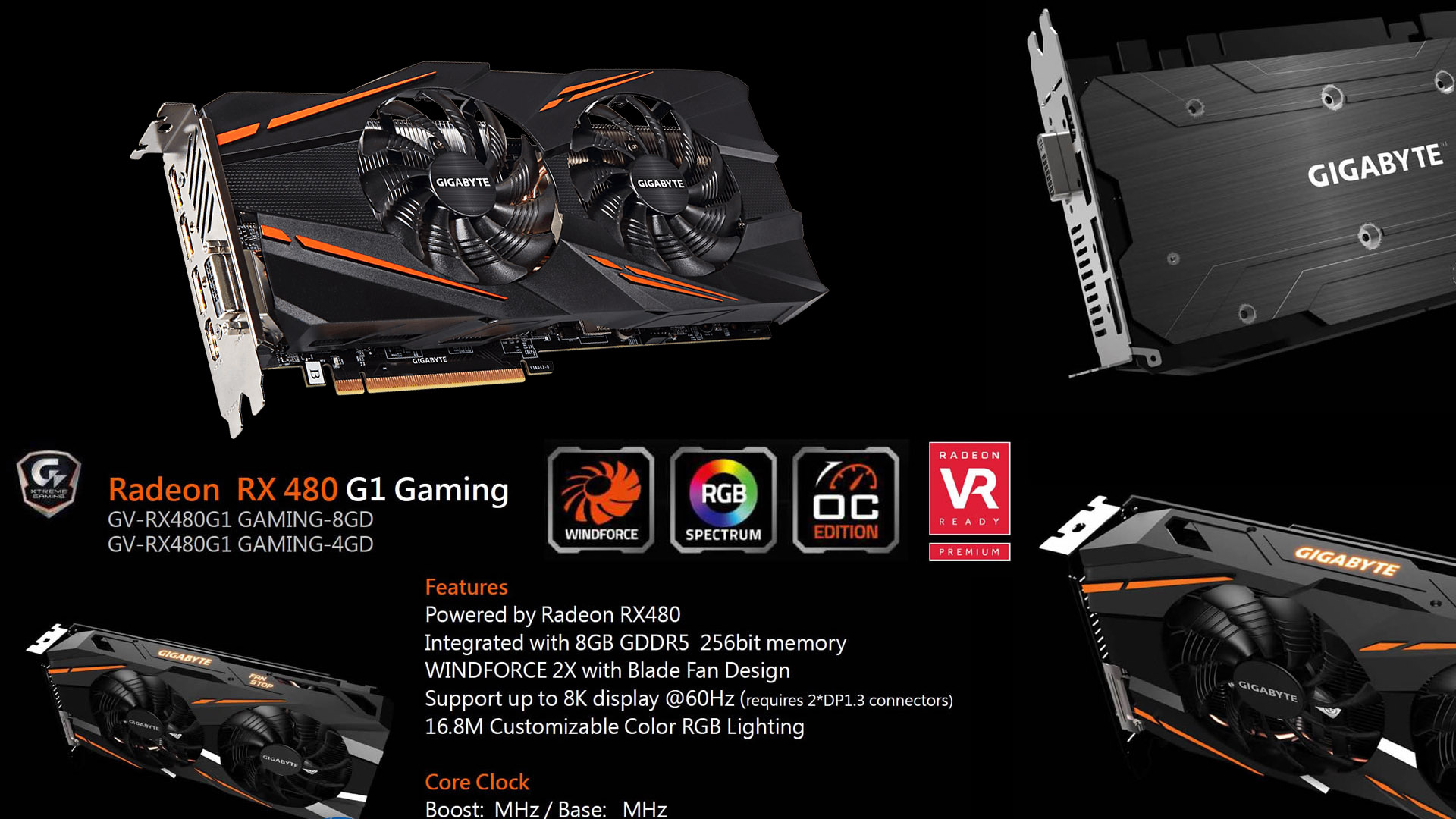 A WindForce 2X hűtéssel szerelt újdonság igazodik a mostani G1 Gaming kártyákhoz, tehát fekete-narancs színezést és RGB világításos emblémát vonultat fel. A kártyából 4 és 8GB-os változat is készül, az órajelek terén pedig 10-20 százalékos emelkedés várható a referenciamodellhez képest.