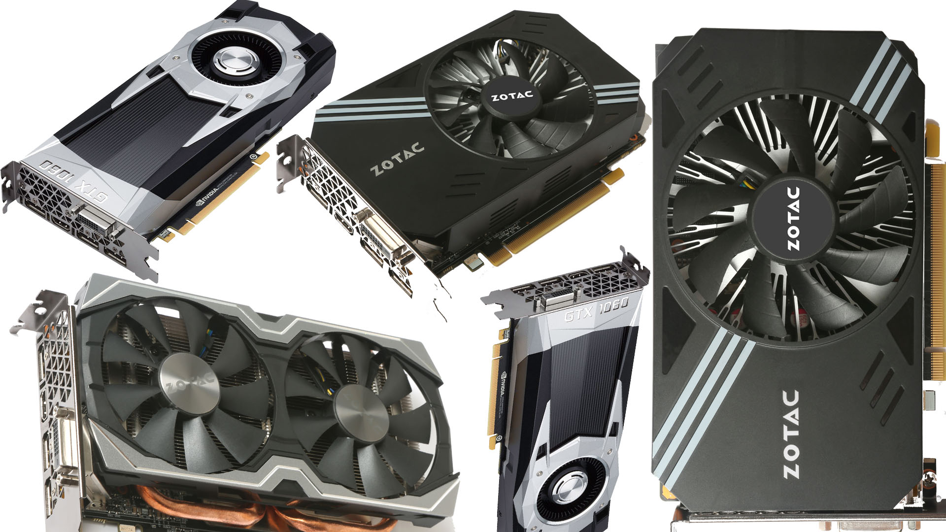 A Zotac GeForce GTX 1060 Mini a kompaktabb konfigokban érzi jól magát, a gyártó pedig nem nyúlt hozzá az órajelekhez, míg a memória terén 3 és 6GB-os változat is érkezik. A Zotac GeForce GTX 1060 AMP a már jól bejáratott AMP szériába érkezik, így gyári tuningra és kiváló hűtésre lehet számítani. Természetesen „Founders” kártyát is piacra dobnak, de ez a modell nem nyújt semmi különlegeset, később pedig egy AMP Extreme modell is várható.