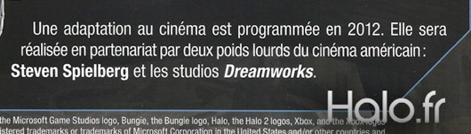 „Egy filmadaptációt készülnek bemutatni 2012-ben. Ezt az amerikai mozivilág két nagyágyúja készíti majd el: Steven Spielberg és a Dreamworks studios.” [Google-fordítás alapján] – áll a Halo.fr sajtóközleményében, mely alapjáraton a Halo: Cryptum regény francia kiadásáról tájékoztatja az olvasókat.