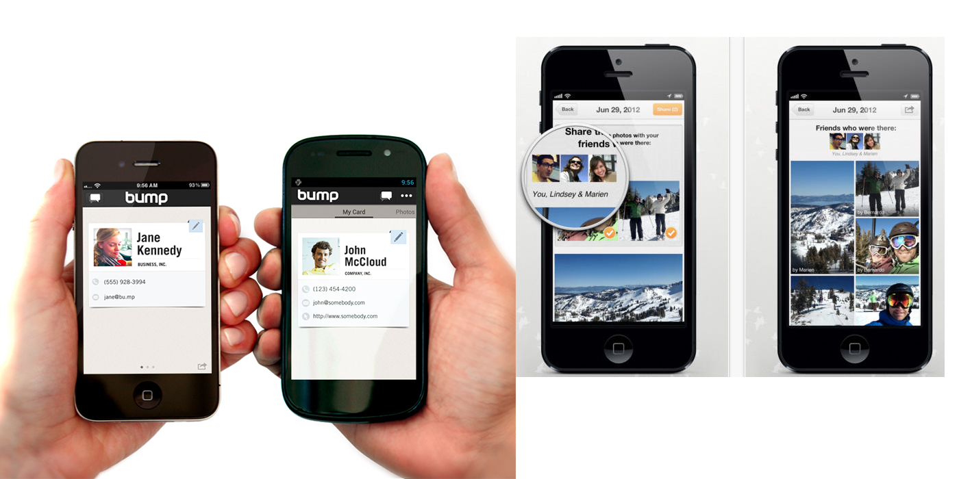 A Bump egyébként egy Android és iOS platformokra elérhető alkalmazás, melynek segítségével például névjegyeket és képeket oszthattunk meg egy egyszerű folyamatnak köszönhetően. A Flock segítségével pedig több eszközön tárolt fotókból tudunk például egy albumot készíteni.