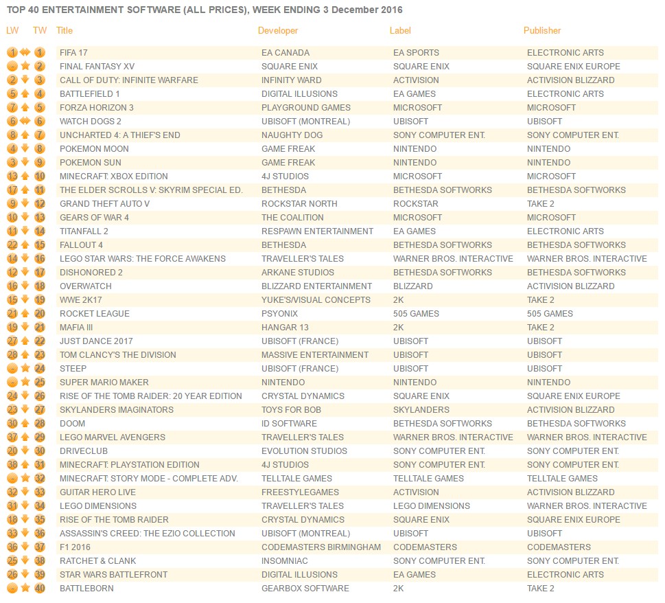 Érdekesség, hogy a Final Fantasy XV az Egyesült Királyságban a sorozat második legjobb eladásit tudta produkálni, lévén a 2010-ben megjelent Final Fantasy XIII valamiért jobban fogyott ugyanilyen időintervallumban, mint a 15. rész.