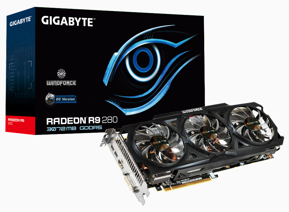 A Gigabyte Radeon R9 280 3GB GDDR5 memóriát kapott 384-bites interfésszel, míg a Gigabyte Radeon R7 265 csupán 256-bites interfésszel ellátott 2GB GDDR5 memóriát kapott. A nagyobb teljesítményt szoftveresen is megtámogatta a gyártó, így az OC GURU II segítségével az órajeleket, a fogyasztást és a hűtést is szabályozni lehet.
