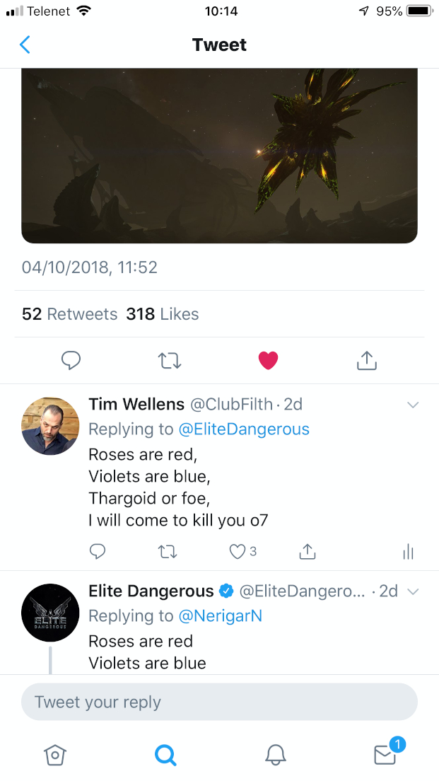 But now he’s one foot in the grave!#NationalPoetryDay pic.twitter.com/yrHl1O0M1c? Elite Dangerous (@EliteDangerous) 2018. október 4.