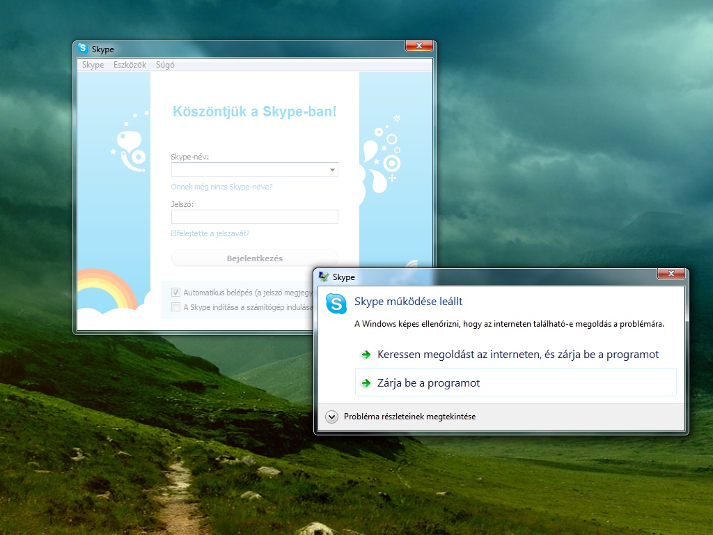 14 éve, 7 hónapja és 3 heteÉn elindítom skypeot és mire eljutok a jelszavam feléig kiírja: a skype működése leállt.