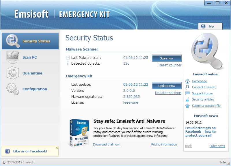Az Emsisoft Emergency Kit most bejelentett 2.0.0.8-as verziója már letölthető az alábbi linkre kattintva.
