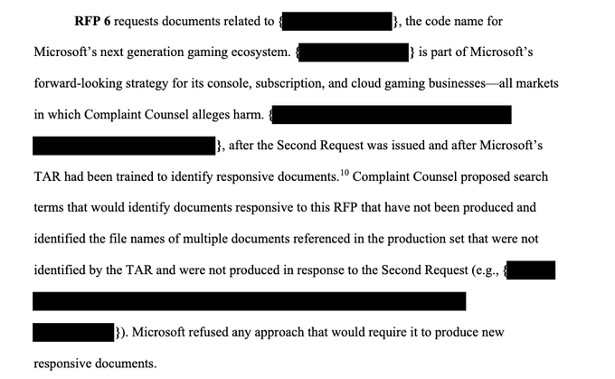 A dokumentumban feketével kihúzott helyek takarják az új konzol kódnevét, melyek elég hosszúak ahhoz, hogy megfeleljenek a Microsoft által használt standardnak (lásd a Project Scarlett és egyéb eseteket), szóval nem kizárt, hogy a redmondi óriás előbb kíván átlépni az új generációba, mint azt korábban gondoltuk volna.
