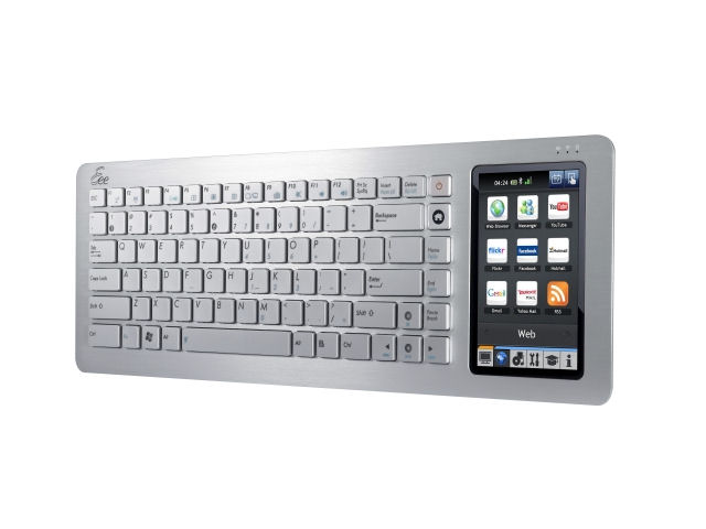 A számítógépen a numerikus billentyűzet helyét egy 5 inches, több érintés kezelésére is alkalmas kijelző vette át, ami a 800 X 480-as natív felbontással rendelkezik. Az Asus Eee Keyboard az Intel 945GSE + ICH7-M chipkészlet páros köré épül, és az Intel 1,60GHz-es Atom N270-es központi feldolgozójával van felvértezve, amit egy 1GB RAM-al feltöltött DDR2-es memóriarendszerrel társítottak a tervezők. Az adatok tárolásáról változattól függően egy 16GB-os vagy egy 32GB-os szilárdtest-meghajtó (SSD) gondoskodik, amikre a gyártó a Microsoft Windows XP Home Edition operációs rendszert telepítette.