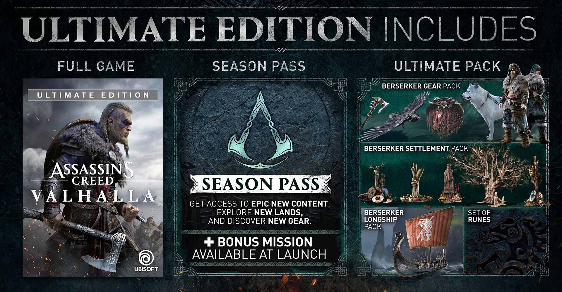 A Ubisoft csak úgy ontja magából a friss részleteket az Assassin's Creed Valhalla kapcsán, így bár még mindig rengeteg dolog nem ismert a vikinges akciójáték kapcsán, az viszont már biztos, hogy az alapkiadáson felül három speciális csomag is érkezik hozzá. Közülük az első a a 100 dolláros Gold Edition lesz, mely az alapjátékon felül tartalmazza majd a Season Pass-t, plusz egy bónusz küldetést a megjelenéskor, de érdemesebb lehet majd sokaknak inkább a 120 dolláros Ultimate Edition mellett dönteni, mely ezen felül egy Ultimate Pack nevű csomagot is tartalmaz még benne olyan digitális extrákkal, mint a Berserker Gear Pack, a Berserker Settlement Pack vagy a Berserker Longship Pack.