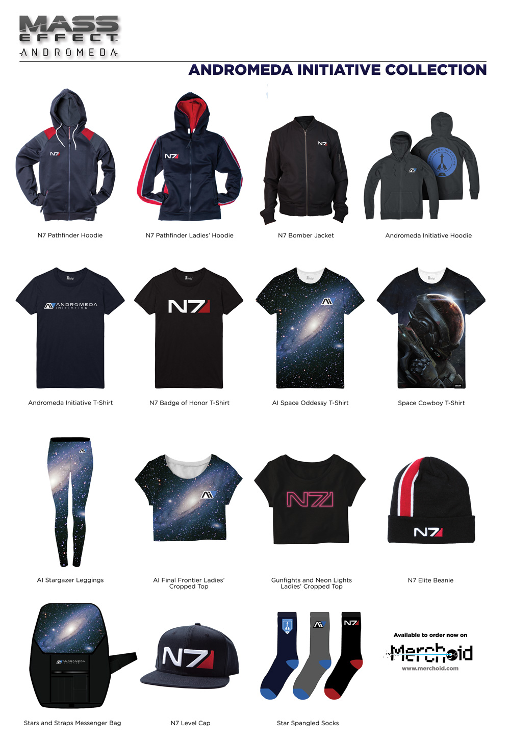 Az egyik legnagyobb videojátékos merchandise forgalmazó és készítőként elhíresült Merchoid csapata ma délután hivatalosan is leleplezte a Mass Effect Andromeda mellé bejelentett ruhákat és egyéb ajándéktárgyakat, aminek igencsak örülhetnek a rajongók, hiszen egészen széles választékból válogathatnak maguknak. Ennek megfelelően aki szeretne, az az Andromeda Initiative Collection részeként a legkülönfélébb pulóverek, pólók, cicanadrágok, zoknik, sapkák és táskák közül válogathat magának, amelyekben a közös pontot nyilvánvalóan a Mass Effect adja majd.