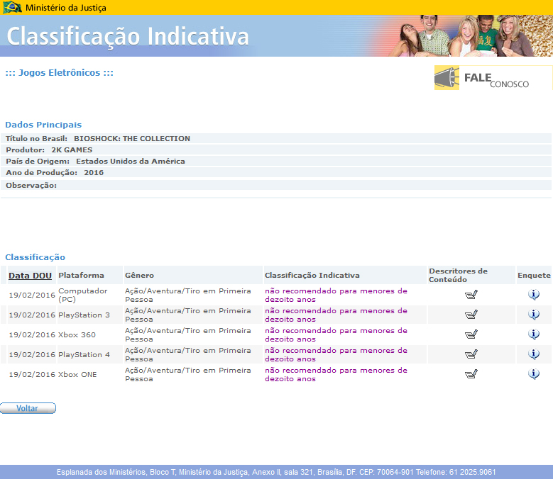 Habár hivatalos bejelentésünk még nincs, a jó öreg brazilok ismét idő előtt kiszivárogtatták, hogy hamarosan egy tartalmas kollekcióban is napvilágot láthatnak majd a BioShock-sorozat eddig megjelent tagjai. Az ország korbesorolási hivatalának adatbázisában ugyanis nemrégiben feltűnt egy BioShock: The Collection névre keresztelt csomag, aminek a legnagyobb érdekessége az, hogy nemcsak előző-, hanem újgenerációs konzolokra is bejegyeztették.