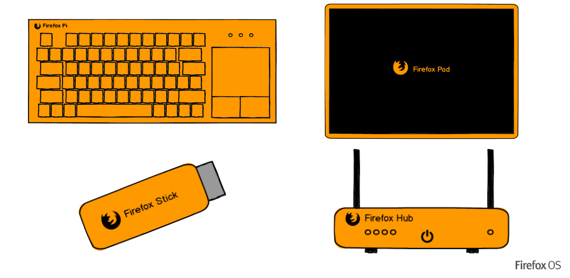 Belátható időn belül ugyanis várható egy HDMI Stick, mely Firefox OS-t futtat és a HDMI csatlakozóval rendelkező eszközök felokosítását veszi célba. A rendszert futtató táblagép és router már egy érdekesebb elképzelés, de a Firefox Pi névre keresztelt billentyűzetbe épített, Firefox OS-t futtató számítógép talán még érdekesebb. Egyelőre nem tudni pontosan, hogy melyik eszköz és mikor kerül tényleg forgalomba, de mindegyik elképzelésre reális esély mutatkozik.