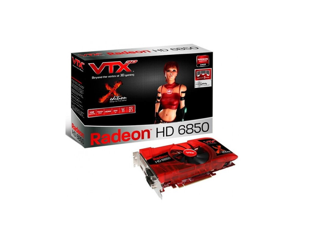 A gyártó által alkalmazott hűtés egy nagy teljesítményű, 92 milliméteres ventilátorral, valamint két darab hővezető csővel van felvértezve. A VTX3D Radeon HD6850 X Edition a 40nm-es gyártástechnológiával előállított, Barts kódnevű grafikus feldolgozó köré épül, ami 960 darab Stream processzort és 48 darab textúrázó egységet tartalmaz, a 256bit-es memóriainterfészen keresztül pedig 1024MB GDDR5 VRAM-ot képes elérni.