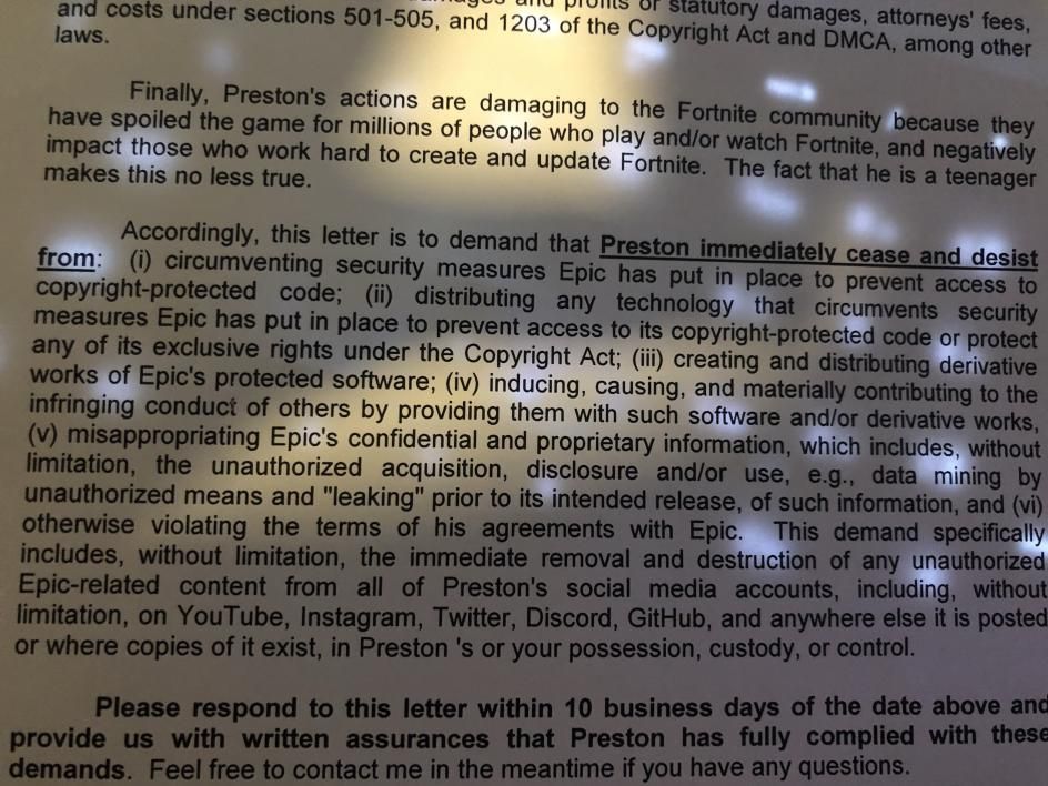 A Variety kezébe jutott a levél, melyet a vállalat az FNBRLeaks-nek küldött, és ebből kiderül, hogy az Epic nem a weboldaluk felfüggesztését kérvényezte, hanem az ő játékaikról szóló tartalom eltávolítását.