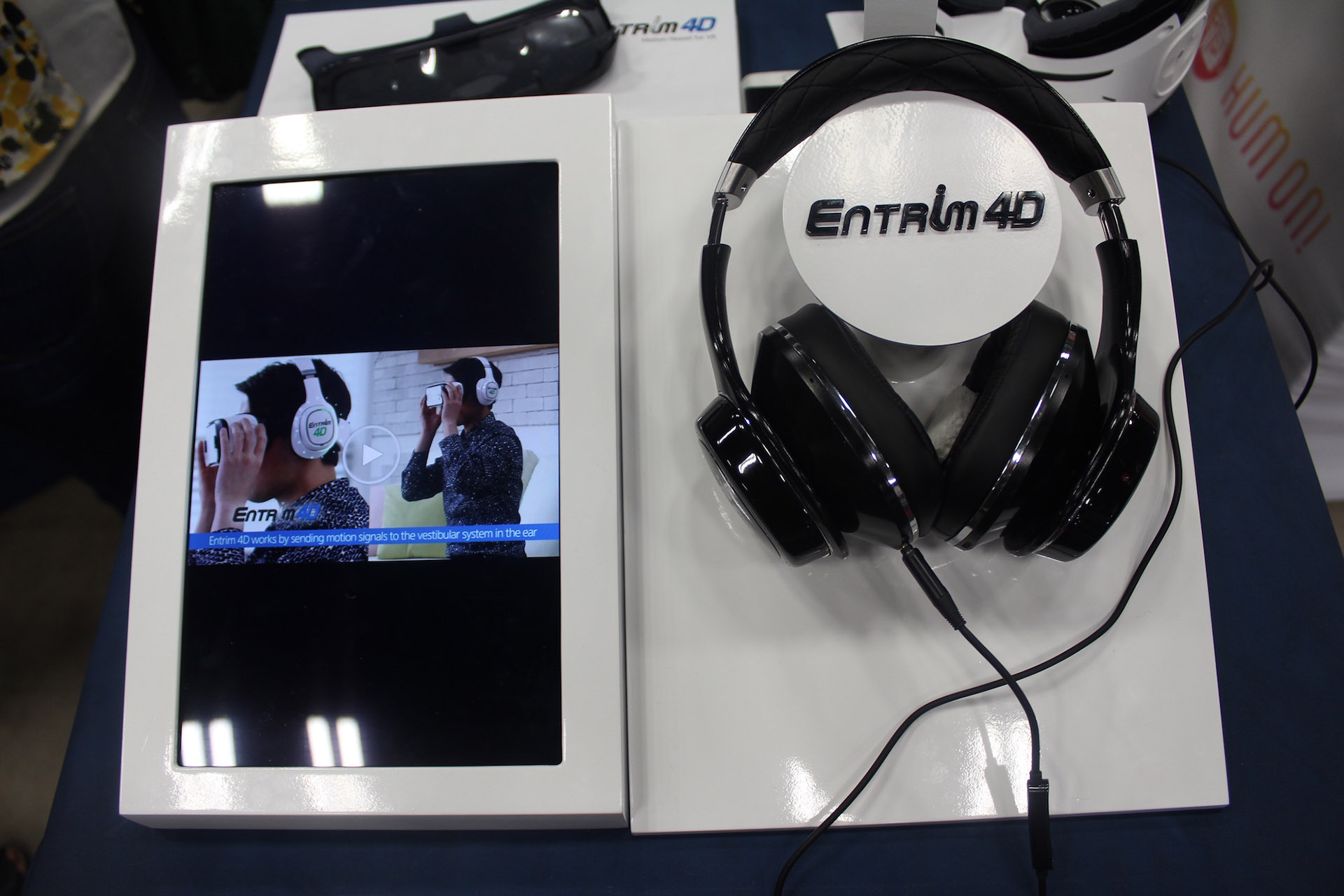 A Samsung Entrim 4D névre keresztelt eszköz elektromos jeleket küld a szemnél található idegeknek, melyek befolyásolják az egyensúlyérzékünket és a mozgásunkat. Ennek segítségével arra késztethetik az agyunkat, hogy még jobban éljük bele magunkat a képernyőn látottakba és a mozgásunk is aktívabb legyen. Természetesen ez még csak egy fejlesztési stádiumban lévő eszköz, így a piacra kerülésről nincs hír, de alapjában véve egy remek kiegészítő lehet.