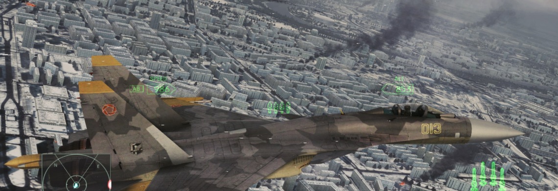 A helikopteres akciók esetében egyébiránt többnyire nem légi, hanem szárazföldi célpontok ellen fogunk csatározni, és érdekesség, hogy ez a rész olyan, mintha egy teljesen más videojáték lenne, a hagyományos vadászgépes missziókhoz képest ugyanis érdekesebb feladatok és lényegesen szebb küllem is vár majd ránk a pályákon, ami kissé érthetetlen számunkra is. Teljes egészében egyébiránt egy kicsit kritikán alulinak nevezhető az Ace Combat: Assault Horizon grafikája – ne tévesszenek meg a képek -, ami hiába jelent meg már 2011-ben, de ez nem mentség az alacsony felbontású textúrákra, amelyek meglepő módon nem csak a földi objektumok esetében tűnnek fel, hanem példának okáért a repülőgépmodellek esetében is, így elfelejthetjük például, hogy gyönyörködünk gépünk műszerfalában vagy a részletes kidolgozottságban, az Ace Combat: Assault Horizonra ugyanis ez nem igazán jellemző. Cserébe legalább az optimalizálással nincs gond a játék esetében, a PC-s port tehát ezen a téren jól vizsgázott, de hiányosságai így is akadnak, különös tekintettel az irányításra, amit – főleg a helikopteres küldetések esetében – ne is próbáljunk meg kivitelezni egyszerű billentyűzettel, mert egy életre szóló rossz emléket szerezhetünk magunknak, helyette inkább a hagyományos joystickkal próbáljunk szerencsét.