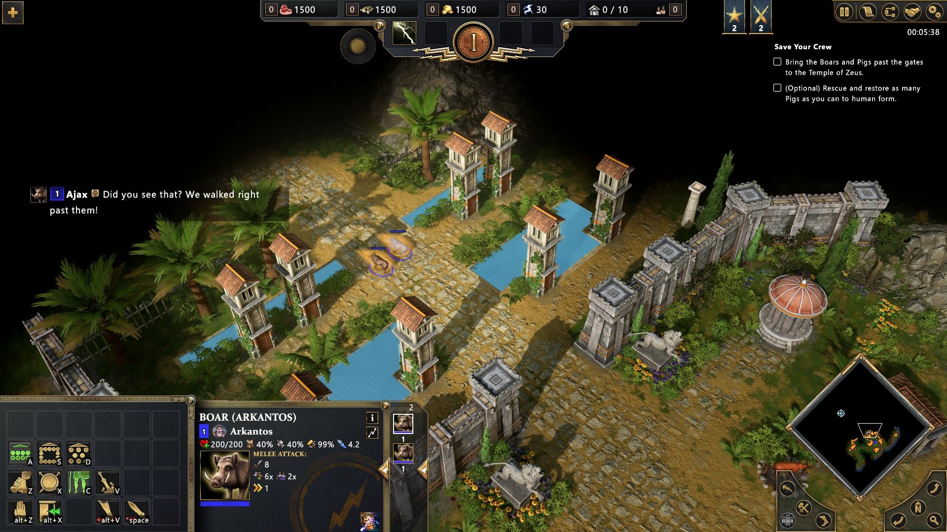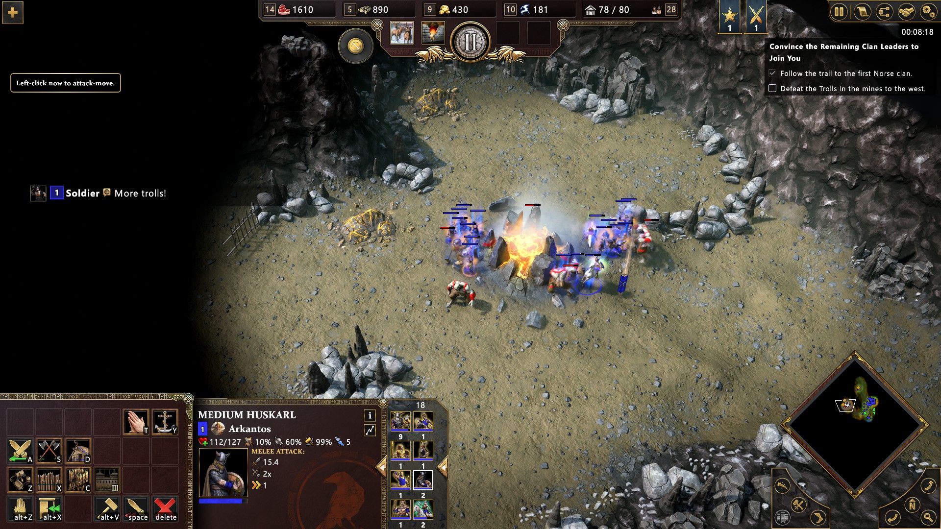 Lássunk ide is egy példát: van egy fal előttem, amin egy kapu figyel. Át akarok jutni a kapun túlra, azonban a nyílásba beletömörül az egységeim nagy része, miközben ütlegelik az ellent. Mivel „okos” voltam, ezért az összes katonámat kijelölve „Attack command”-dal a kapu mögé kattintok. Erre néhány egység, mintha megvilágosodott volna egy orákulumtól, elrohan a fal mentén, mert tudják, hogy hiába felderítetlen az egész ottani terület, van egy másik kapu a túlvégen, amit talán tudnak majd használni átjárásra (spoiler: lelőtte őket egy erőd).
