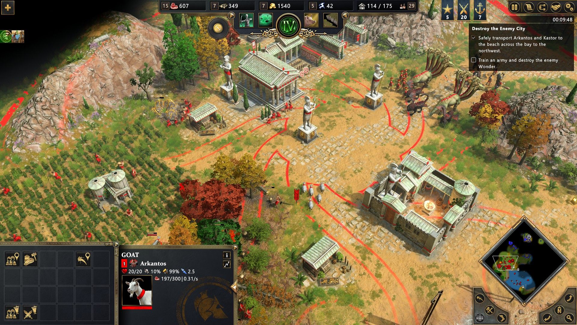 A probléma mondjuk az is lehet, hogy nem az Ensemble Studios dolgozott mai tesztünk alanyán, mint ahogyan azt tették az eredetinél és az Extended Edition-nél. Ez is elfogadható magyarázat lehetne, de az AoM: Retold fejlesztői, a World’s Edge, a Forgotten Empires és a Tantalus Media az AoE II és III definitív változatainál is jelen voltak, szóval valószínűleg értik a dolgukat. Sebaj; a bűnbak keresése végső soron nem fog minket előre vinni, úgyhogy lessük meg inkább magát a játékot és annak a temérdek problémáját.
