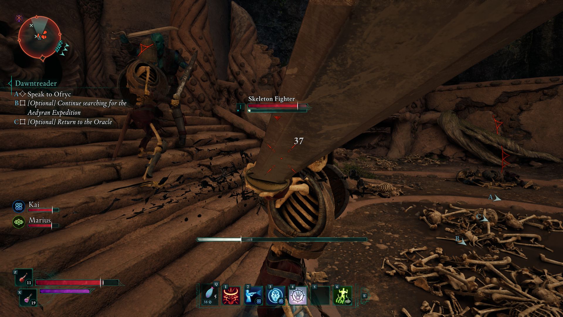A képességfák is archetípusoknak megfelelően vannak elosztva: harcos, íjász és varázsló, azonban kapunk egy isteni és egy bajtársi fát is. Az isteni részlegnél azokat a képességeket találjuk, melyekre speciális küldetések révén tettünk szert, míg a bajtársi fa, a nevéből adódóan, a hozzánk csapódó pajtások képességeit tartalmazza. Ezeket is ugyanúgy tudjuk fejleszteni, mint a sajátunkat, bár a társak jóval ritkábban kapnak elkölthető pontot ide, ráadásul nekik jóval limitáltabb lehetőségeik vannak hozzánk képest. Összesen négy barátot tudunk a játék során összeszedni, kikből egyszerre maximum kettő tarthat velünk, a másik kettő a táborban fog ránk várni.