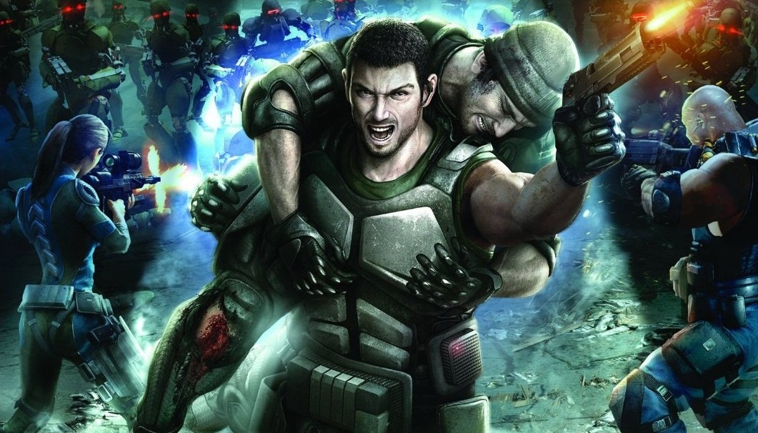 Tegezünkben összesen négyféle fegyver fér el: folyamatosan fejleszthető géppisztollyal kénytelenek leszünk megbarátkozni, ő ugyanis egész a játék végéig velünk marad. Ez egy sajátos assault rifle, amelyet folyamatosan fejlesztgethetünk az utunkat keresztező automatáknál – bár hozzátenném, hogy a fejlesztések többnyire csak a játék vége felé érződnek -, ráadásul képes nagy hatóerejű energia-lökettel, úgynevezett shock bursttel legyalulni az ellenséges sereget. Emellett felvértezhetjük magunkat egy másodlagos csúzlival, amit éppen a harcmezőn találunk, vagy a már említett automatában veszünk, legyen az nehézgépfegyver, rakétavető vagy más. És a gránátok? Óh, igen, abból is lesz néhány… repeszgránát, hologramot kibocsátó gránát, tapadó gránát; minden, amit csak nem szégyell egy ehhez hasonló sci-fi öröm. És amennyiben elpetárdáztuk teljes muníciókészletünket, akkor sincs ok a pánikra, hiszen éppen ilyen alkalmakra tartogatjuk a mi kis kifogyhatatlan tárral megáldott pisztolyunkat!
