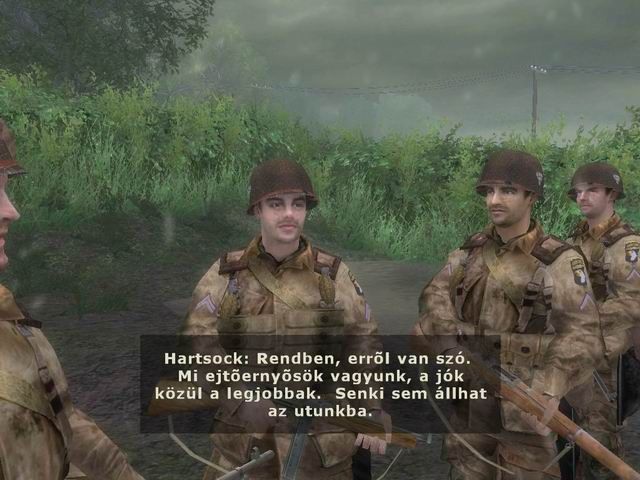 De térjünk vissza a történet elejére. A kezdés kicsit ismerős lehet a Medal Of Honor: Pacific Assult-ból, ugyanis a történet egy csata kellős közepével kezdődik hét nappal az ugrás után. Itt a néhány ellenséges katona lelövöldözése után jön egy tank és bármit teszünk nem lehet túlélni a lövéseit. Legalább is így tűnik elsőre. A rövid betekintést követően kezdődik a játék a kezdetek kezdetén, azaz az ugrás idejében. Már a történet elején elég szerencsétlenül kezdődnek az események: tizenhárom katona ül a gép fedélzetén amin utazunk, amit természetesen találat ér még az ugrás előtt, így kicsit korábban kell ugrani, mint az a terv szerint szól. Ennek is köszönhető, hogy a társaság elég szétszórtan ér földet. Az ezt követő húsz fejezet elég sablonos, de annál izgalmasabb. Azért sablonos, mert igazán ugyan arra a taktikára épül az összes küldetés: ellenség tűz alá vonás a fedezék mögül, megkerülése, lelövése. Az eseményeket az bonyolítja esetleg, hogy tényleg több német egységgel találkozunk egy-egy csatamezőn, így nem mindegy melyik irányból és milyen sorrendben támadjuk le a csapatokat.