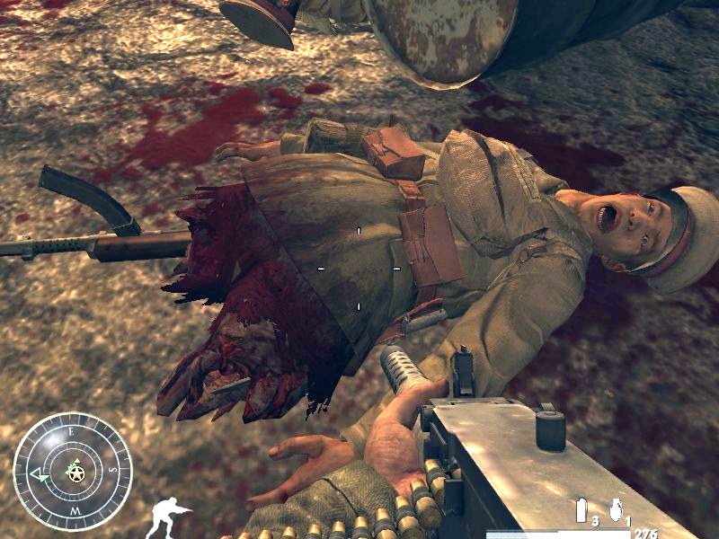 Igen, ahogyan még sosem láttad. És remélhetőleg a valóságban soha nem is fogod. A naturalizmus nagyon jellemző az ötödik részre. Szakítva a hagyományokkal (az összessel!), itt egyetlen játékban sem látott momentumok sorakoznak szép hosszú sorban. Ilyen a sebesültek ábrázolása. A végtagok leszakadása általános, és akár egy percig is eltart, mire a sérült végtagon elvérzik az ellenfél. A németek ilyenkor csak szenvednek, a japánok fanatizmusa odáig fajult, hogy haldoklás közben is inkább előveszi a pisztolyát, és tüzel ránk. A sebesültek kivégzése tehát praktikus dolog. Nincsen időd moralizálni. A találatot heves vér fröcsögés jellemzi, így a vérnyomokból a fákon jól látható, hogy hol volt harc. A készítők olyan apróságokra is figyeltek, hogy a nagyobb erejű fegyver több vért is eredményez. A gránátok leszakítják a végtagokat. A szamurájkard, és a szurony nagyon látványos sérüléseket képes okozni, ám a "felfoghatatlan" még csak ezután következik. A játékban debütál a csendes óceáni hadszíntér egy nagyon hatékony fegyvere, a lángszóró. Ehhez a fegyverhez pedig itt már gyomor is kell. A búvóhelyek, vagy lövészárkok gyors, és biztonságos megtisztításának eszköze ez. Talán soha nem láttunk még ennyire élethű tüzet sehol, és azt sem, hogy milyen hatása van. A grafikai motort módosítani is kellett annak érdekében, hogy az ellenség bőre a szemünk láttára olvadjon le a testéről. A japán fronton többször fogunk lángszóróval rohangálni, mivel ez az egyetlen hatékony módja a bunkerek, és barlangok megtisztítására, megóvva ezzel bajtársainkat.
