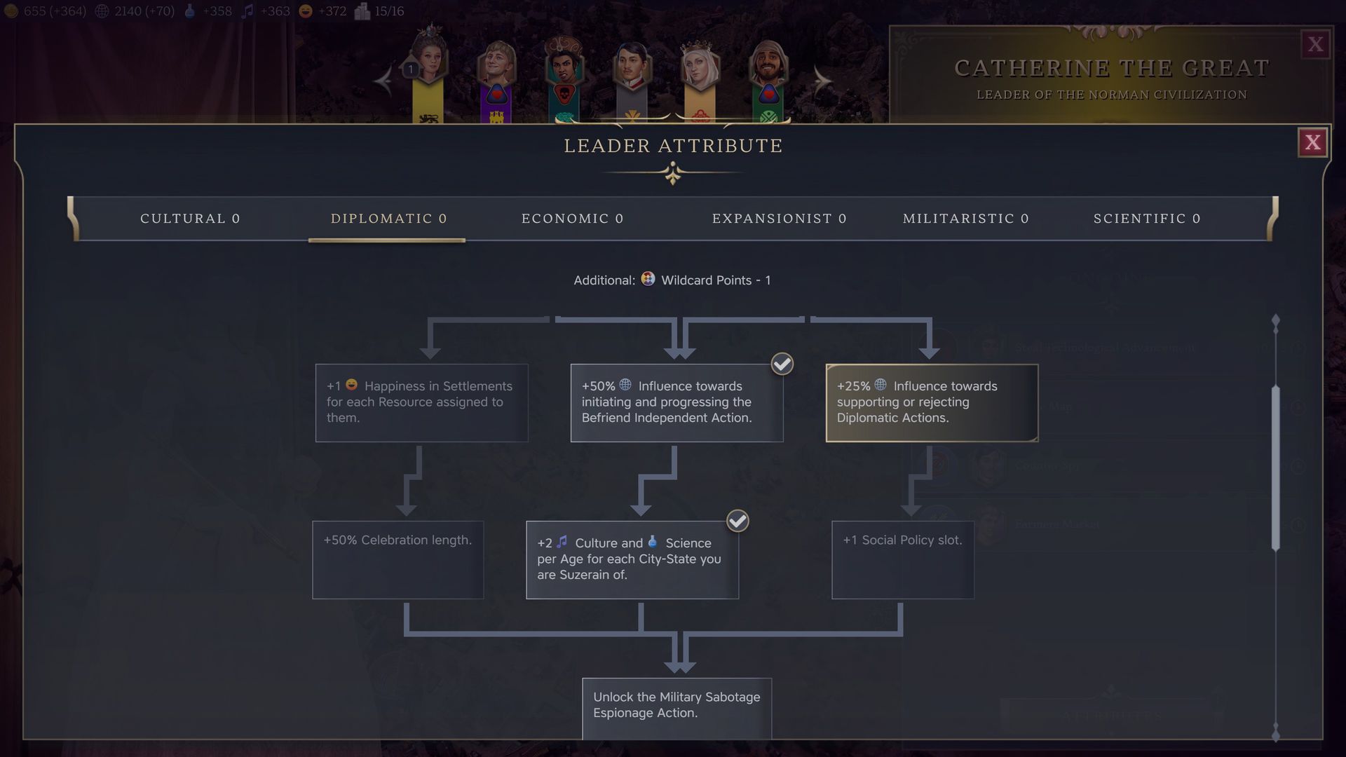 A boldogság nem csak az ünnepléshez fontos, hanem az individuális városokban a termelékenységet is meghatározza. Ameddig nincs mínuszban, addig minden oké lesz, és tulajdonképpen ennyit elég tudni. A boldogság mellett a befolyás pontérték is relatíve újnak számít, melyet diplomáciai akciókra lehet elkölteni. Kezdeményezhetünk megállapodásokat más civilizációkkal, szankciókat róhatunk ki rájuk és kémkedési akciókkal is irritálhatjuk őket. Továbbá befolyással lehet független városállamokkal barátkozni és hűbérurukká válni idővel.