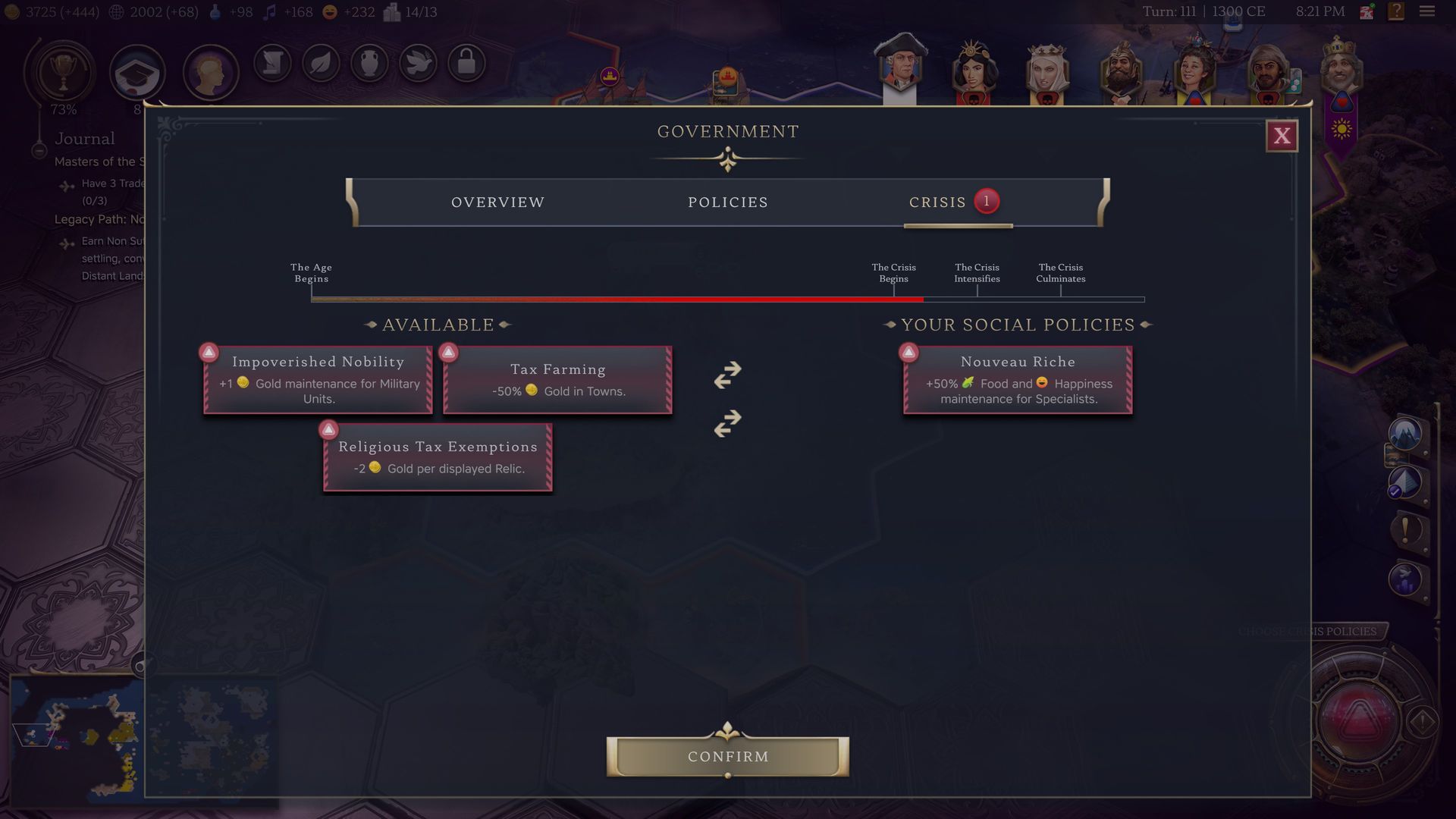 A játékot valahogyan meg is kellene nyerni, ezt pedig a négy nagy útvonal egyikének a követésével tehetjük meg: kultúra, tudomány, hadászat / gyarmatosítás és gazdaság. Úgy kell ezt elképzelni, hogy a négy ághoz kapunk küldetéseket és egy hosszútávú feladatot. A küldetések teljesítése után útvonal-specifikus pontokat kapunk, amiket a következő korban elkölthetünk extrákra. Ezek a bónuszok akár az egész korra kihatással lehetnek, szóval érdemes minimum kettő költhető pontot összeszedni egy ágról. Ha egy ágat kimaxolunk, akkor a következő korban aranykori bónuszokat is kapunk, de nagy valószínűséggel csupán egy ilyen ág-teljesítést lehet elkövetni egy korban, így érdemes specializálódni valamerre.