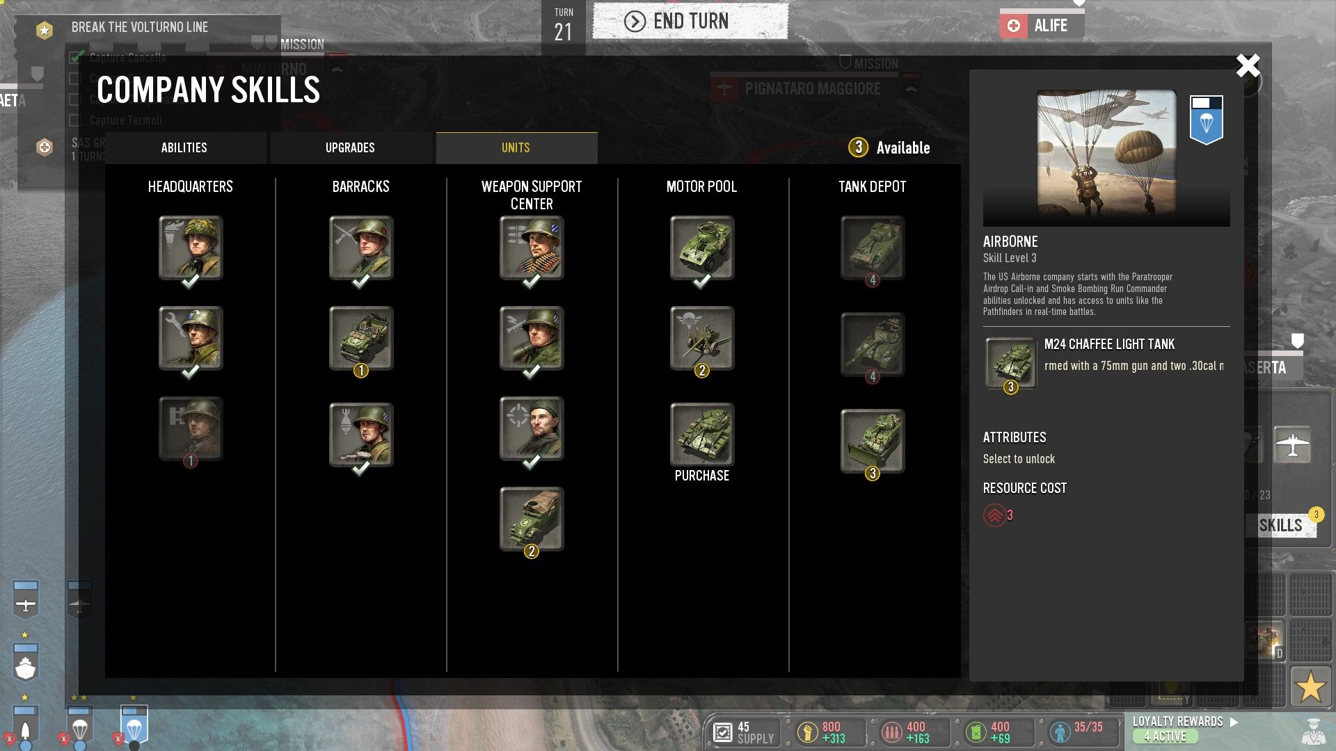 Itt az extra feladatokat érdemes teljesíteni, ugyanis képzettségpontokat kaphat értük az adott egység, melyekből fejlesztéseket lehet nekik vásárolni. Így elérhetővé tehetünk nekik speciális fegyvereket, járműveket vagy képességeket. A térképen az ellenség erődítményeit, raktárait és védelmi rendszereit is érdemes pusztítgatni, de azokért csupán „biztonság” jár, „Skill point” nem. Az elfoglalt városokból megindíthatunk újabb egységeket, illetve hajókat és repülőket is gyárthatunk, ha van rá kapacitása a településnek.