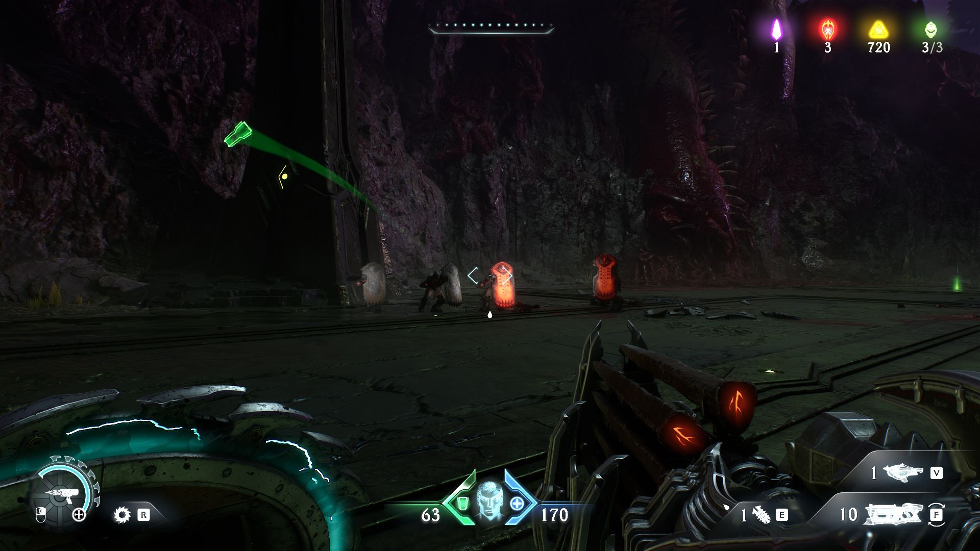 A Shredder és az Impaler a Quake-ből ismert Nailgun-nak a felújított változatai, és sebességéből, forgótárából ítélve ez az eszmei utódja a Chaingun-nak. Ezen kívül kapunk egy Pulverizer-Ravager kombót, melyek kicsit shotgun-osan viselkednek; a töltényeiket vagy szórják (Shredder) vagy egy célpontra fókuszálva (Ravager) ontják magukból. Nekem külön tetszett, hogy a töltények ezekhez a fegyverekhez koponyák, melyeket bedarál az eszköz és a csontszilánkokat köpi mindenfelé.