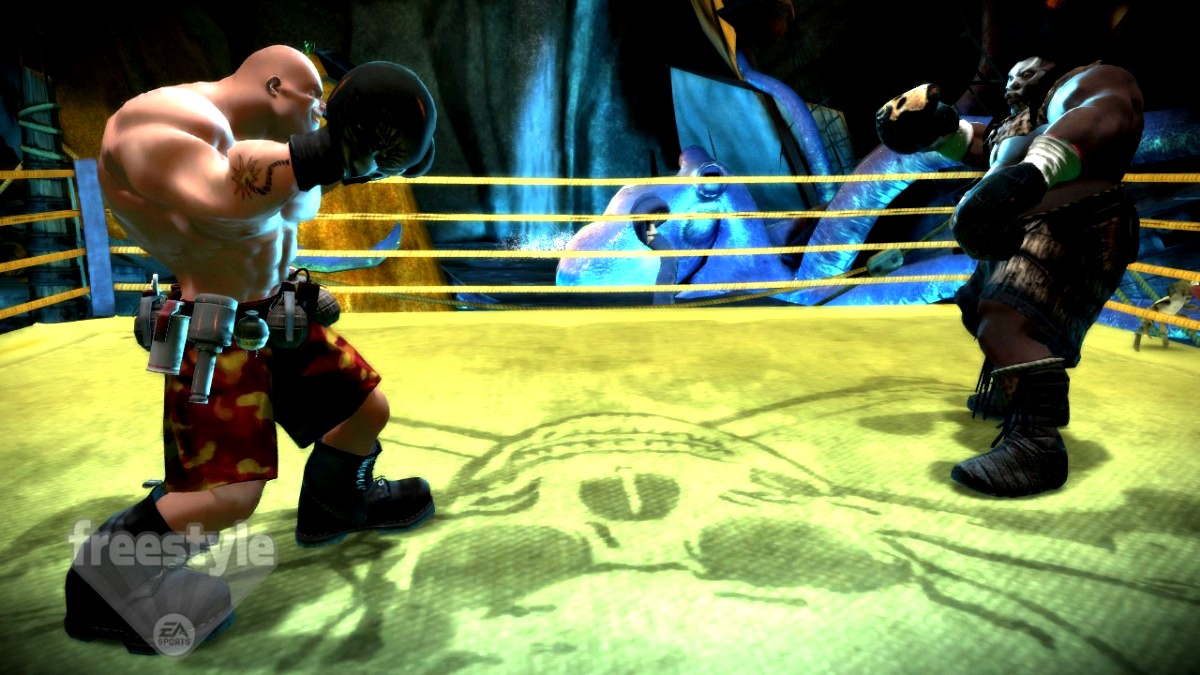 Bevallom, nem rejtegetem, képtelen voltam néhány óránál tovább elviselni a gép ellenni megalázó vereségeket, ezért inkább multiban próbáltam szerencsét, de még csak véletlenül sem az online választékból álltam szembe valami kiszuperált FaceBreaker függővel, ehelyett egy szűz kezű amatőrrel mérkőztem offline-ban, ami kifejezetten szórakoztató volt mindaddig, amíg rá nem érzett az ízére és össze nem maszatolta az ábrázatomat. A játék javára írható, hogy nem elégendő random szerűen püfölni a gombokat, a győzelemhez valóban tudás kell. A grafikai stílus unikum lenne, ha nem lőtték volna már el a Fifa Street 3-ban ezt a fajta megközelítést, így a nagy rácsodálkozás elmarad, viszont a rajzfilmszerű karikatúrák nem süllyednek a korrekt szint alá, ezért elképzelhető, hogy valakinek igenis bejönnek. Bokszolóink folyamatosan sérülnek a bekapott csapásoktól, eltorzul a fejük, egy-egy hevesebb mérkőzés után a felismerhetetlenségig amortizálódhatnak, nyári szünetekkel a fogaik között. A pályákat végtelenül unalmasnak találtam, személyes kedvencem azért akad, egy árkád játékterem képében, de a többi hangyányit sem nyerte el a tetszésemet. Az, hogy az egyik barlangos pályán két rák is osztja egymásnak kesztyűben a pofonokat a ring szélén, betette a kaput. Jól hangzik leírva? Élőben korántsem poénos. A humor nem az erőssége, a gép elleni játszhatóság nem az erőssége, a játékmódozatok száma nem az erőssége, a szórakoztatás nem az erőssége…, és folytathatnánk a sort, de mielőtt az EA pert akasztana a nyakamba, inkább összegzem, és hamar elfelejtem, mert a lábnyomát sem csókolhatja meg a Ready 2 Rumble-nek és őszintén remélem, hogy rémálmaiban sem tér soha vissza, kísérteni a lerombolt lelkivilágomat.