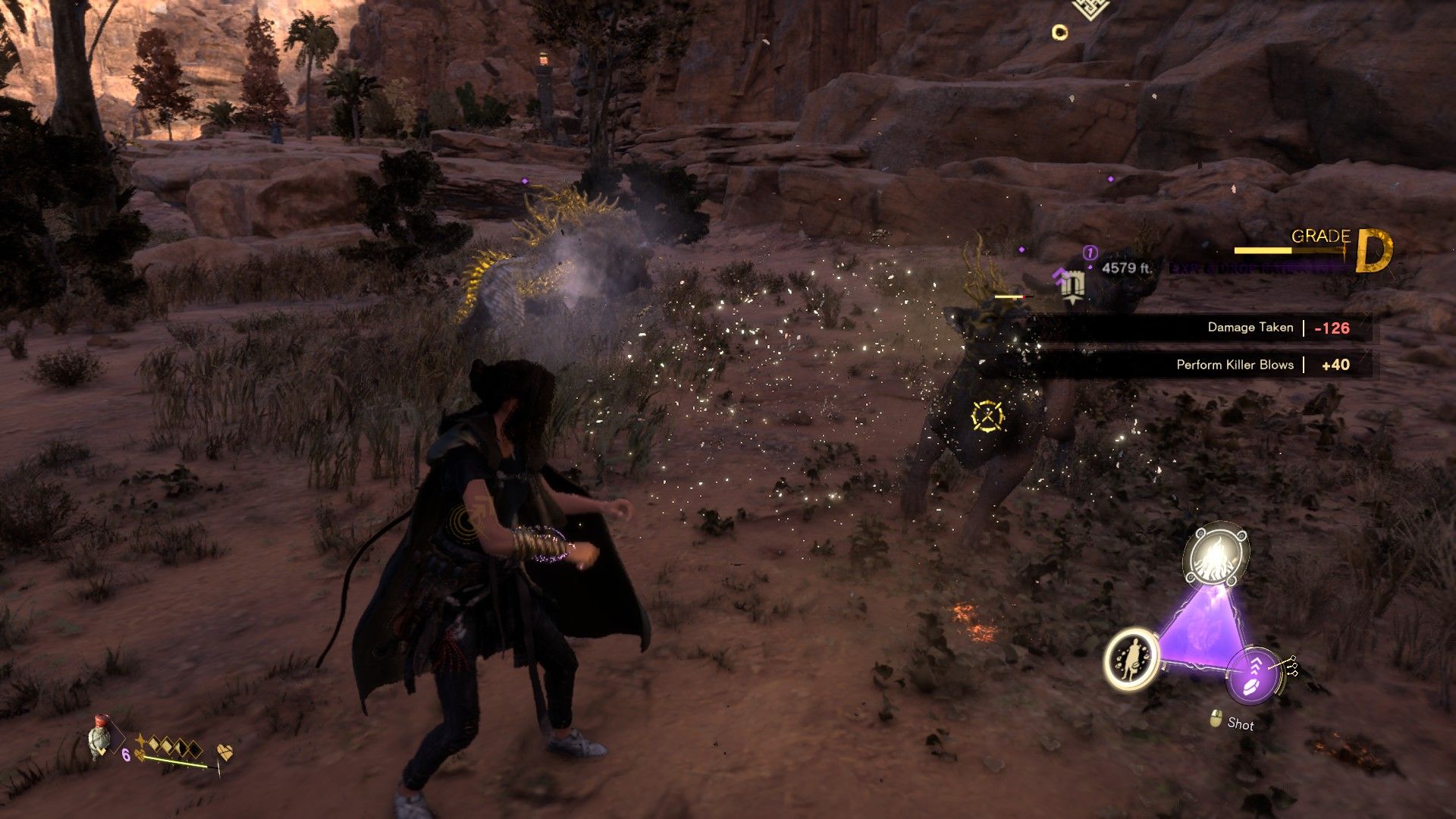 Jó, sok szabadon kószáló főellenséghez (az összeshez) vissza kell majd térnünk, mert azok általánban egy csapásból le tudnak ütni, nagyon szívósak, és a fókuszgomb no meg a kamerakezelés fogyatékosságából kifolyólag rendesen látni sem lehet őket mindig, gyorsaságuknak hála. Emlékszünk talán, hogy a Souls játékokban állandóan a képernyőn maradt a kijelölt ellenfél, és a karakterünk ilyenkor kőrözni kezdte eme célpontot, ám a Forspoken-ben nincs ilyen kamerát is irányító kijelölés. Legfelejebb az alapvető támadásaink fogják némileg követni az Alt-tal kipécézett ellenfelet.